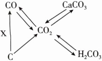 9. 碳及其部分化合物的转化关系如图所示(图中“→”表示一种物质可转化为另一种物质,X表示反应物)。