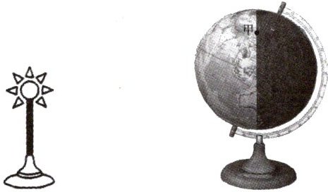 小华同学在暗室里用灯泡(表示太阳)和地球仪(表示地球)演示地球自转,如下图所示。读图,完成2~3题。