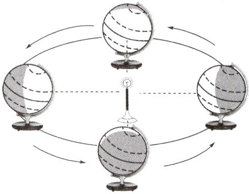 下图示意小明演示的地球公转运动,灯泡代表太阳。读图,完成4~5题。