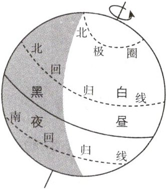 6. C 解析:读图可知,北极圈及其以北地区出现极昼现象,此时太阳直射北回归线;太阳直射南回归线时,北极圈及其以北地区出现极夜现象;太阳直射赤道时,全球昼夜平分;太阳直射点在南北回归线之间移动。