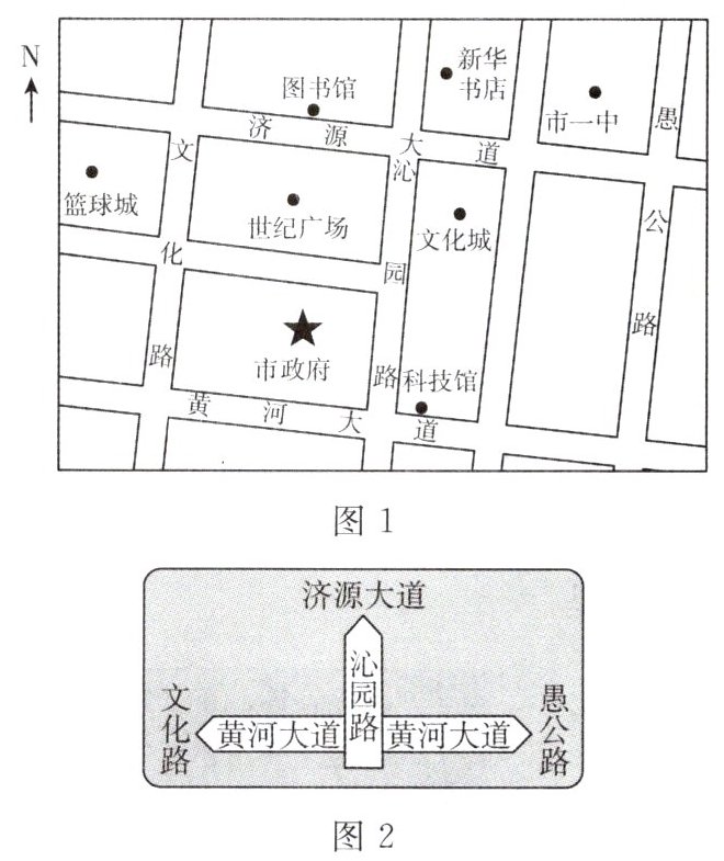 某市一学校组织地理实践小组去文化城参加活动。读文化城周边交通图(图 1)及地理实践小组途中拍摄的道路指示牌(图 2),完成 5~6 题。