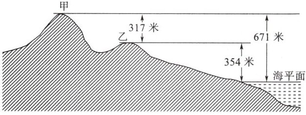 (2)某个地点高出另一个地点的垂直距离,叫相对高度。图中甲、乙两地的相对高度是______米。