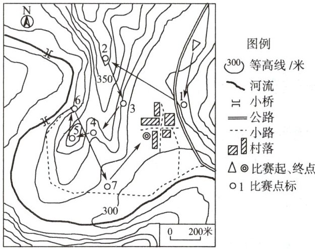 3. 从点标6到点标7,有经验的选手往往会“舍近求远”,不沿箭头直行,而选择小路行进。试分析沿小路行进的优势。