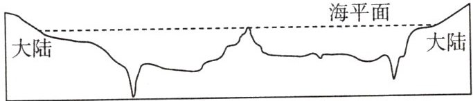 同陆地地形一样,海洋底部也是高低起伏、形态多样。读海底地形剖面示意图,完成8~9题。
