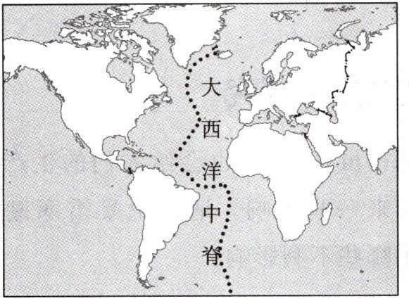 材料二 大西洋中部有一条弯曲延伸的、长长的山链,从北冰洋一直到非洲南端附近,长约16000千米,我们称其为大西洋中脊。大西洋中脊从洋底开始测量,其平均高度为2000多米,巍峨壮观。在一些地方,洋脊的峰顶甚至钻出海面,形成了大西洋上串珠般的群岛,冰岛就是这样形成的。