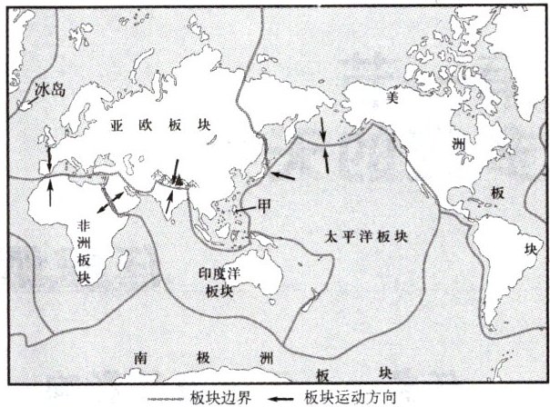 (5)是。甲地位于环太平洋地带,地处亚欧板块、太平洋板块和印度洋板块的交界处,多地震。