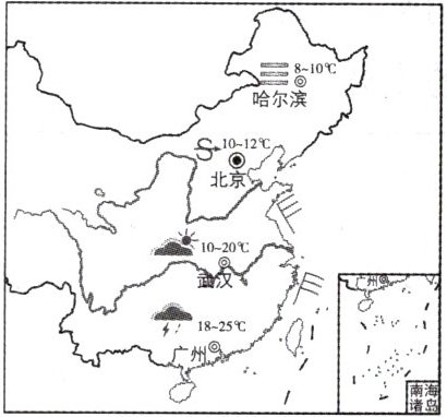下图是我国东部地区四个城市某天的天气状况。据此,完成第11题。