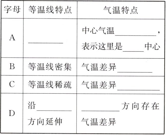 |字母|等温线特点|气温特点|