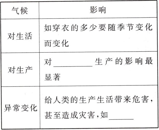 结合所学知识和生活经验,列举气候对日常生活的影响。