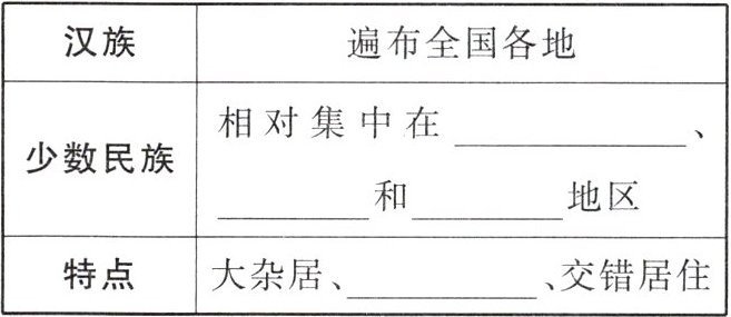 、交错居住|2. 民族自治:我国民族自治地方贯彻国家的民族政策,在政治、经济、社会、文化等方面都取得了长足的进步。