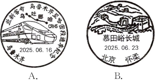 4. 2025 年 6 月,某校一名初中毕业生到④地旅游时,给好友邮寄了一封信件。该信件上加盖的邮戳最可能是( )