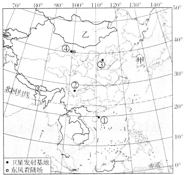 (1)酒泉卫星发射基地位于图中
