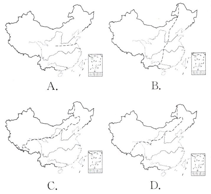5. 下图中表示我国地势第二、三级阶梯分界线的是(