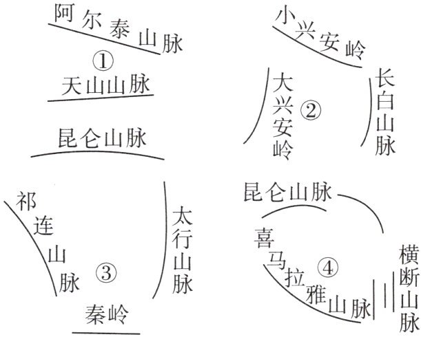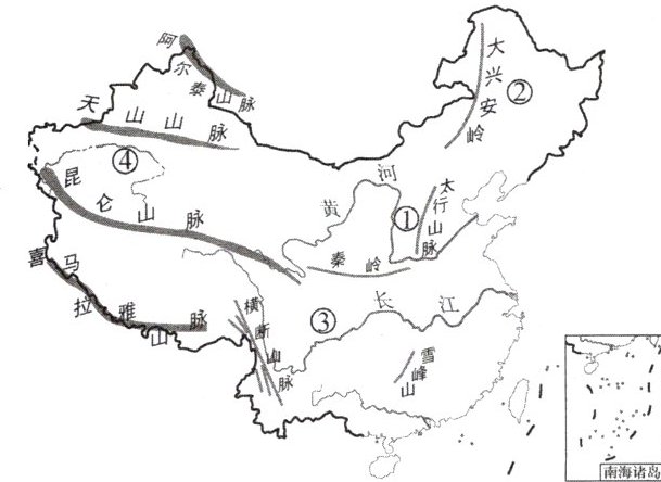 我国地形复杂多样,山区面积广大。纵横交织的山脉,构成了地形的“骨架”,高原、平原、盆地、丘陵镶嵌其间。读图,完成10~11题。