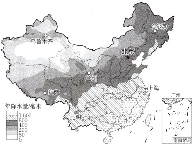 毫米以上,西北部降水较少,许多地区年降水量不足200