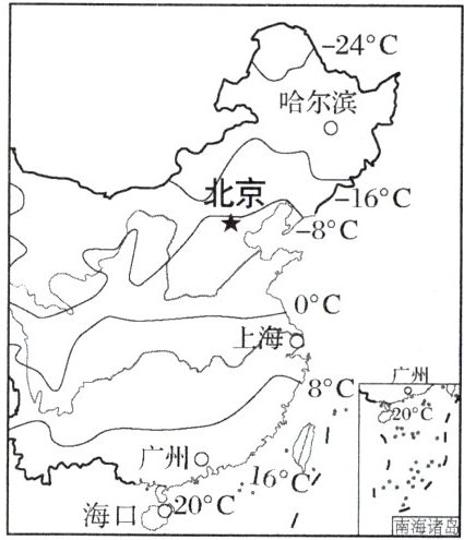(3) 读我国1月份东部地区等温线分布图,总结我国东部地区1月平均气温的变化规律并分析其原因。
