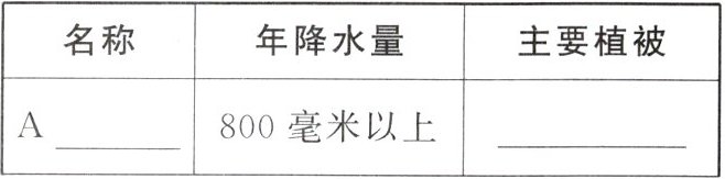 |名称|年降水量|主要植被|