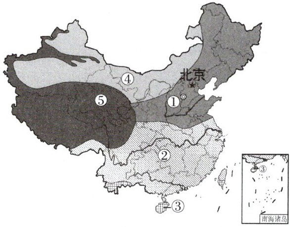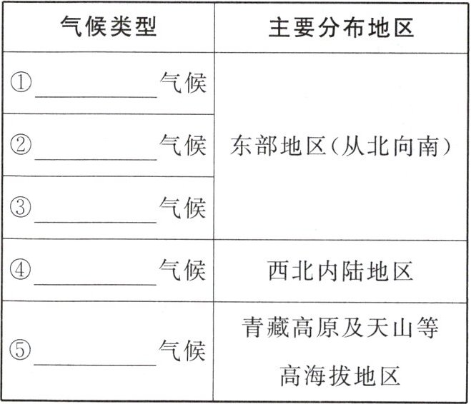 气候|西北内陆地区||⑤