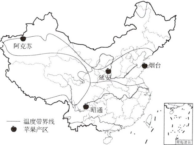 (跨学科·生物学)苹果喜光、喜温凉。读我国苹果主产区分布图,完成1~2题。