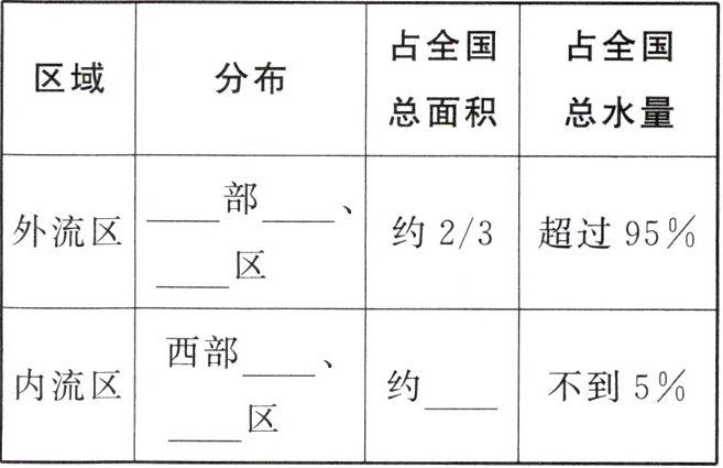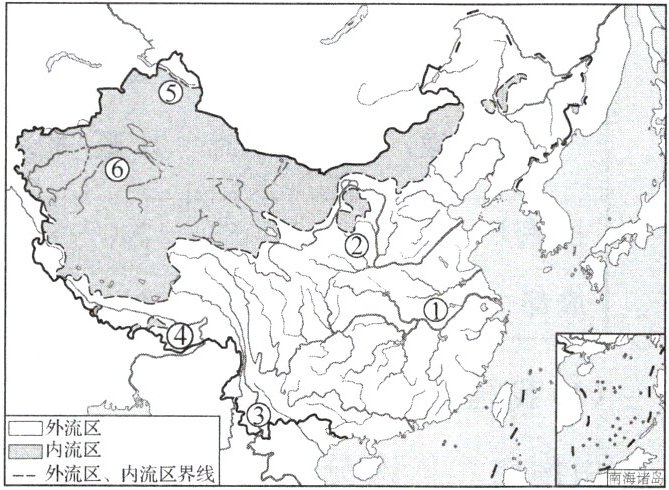 (1)海洋 长江 黄河 澜沧江 雅鲁藏布江 额尔齐斯河 内陆洼地 塔里木河