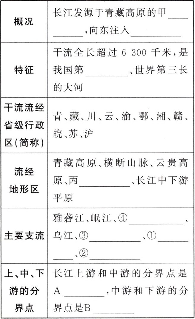 、长江中下游平原||主要支流|雅砻江、岷江、④