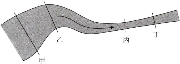 (1)河流的流速与过水横截面面积成反比例,当河流的流量一定时,过水横截面面积越大,河流的流速越小;过水横截面面积越小,河流的流速越大。上图河流中,流速最快的是横截面