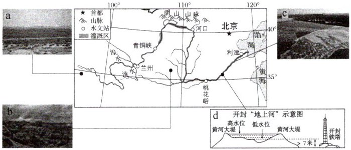 (3)d图直观展示了黄河下游的“地上河”景观,根据所学的知识,梳理其形成过程: