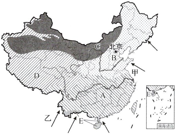 (1) 我国季风气候显著,夏季盛行来自太平洋的甲