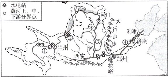 河段。(3) 俗话说“跳进黄河也洗不清”,黄河含沙量巨大,这些泥沙主要来自图中