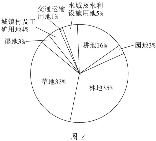 (2)结合图2,归纳我国可利用土地类型的构成特点。