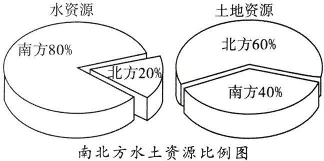 (2)读南北方水土资源比例图可以看出,水土矛盾更为突出的是