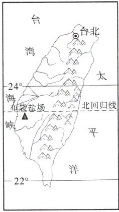 3. 布袋盐场是台湾省最大的盐场,位于台湾岛西南部。读台湾岛示意图,分析布袋盐场利于晒盐的自然条件是(