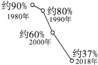 稀土含有多种稀有元素,俗称“工业黄金”,用途十分广泛,特别是在军事、航天和高新技术领域,是相当重要的战略储备物资,中国曾是世界上稀土储量最大的国家,产量也长期位居世界第一。读我国稀土储量全球占比变化图,完成10~11题。