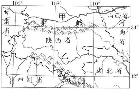 B [甲地区位于秦岭以北,农田多为旱地,农作物主要有小麦、玉米、大豆等;乙地区位于秦岭以南,农业以水田种植业为主,1月份最低气温在0℃以上,河流冬季不结冰。]