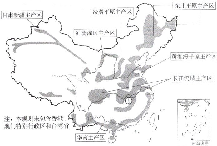 读中国农业“十二五”期间农产品主产区战略格局图,完成9~10题。