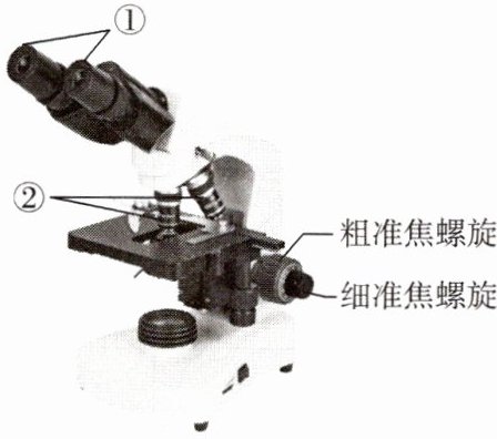 D 解析:显微镜的放大倍数是②物镜放大倍数和①目镜放大倍数的乘积。该显微镜的镜筒不能移动,可以通过旋转准焦螺旋上升或下降载物台,所以,上升载物台时眼睛应从侧面注视物镜,为避免物镜压碎标本或损坏镜头。观察时先转动粗准焦螺旋使载物台上升,使物镜接近玻片标本。需要时,可以转动细准焦螺旋,使物像更为清晰。显微镜的放大倍数越大,看到的细胞就越大,数目越少;显微镜的放大倍数越小,看到的细胞就越小,数目越多,所以,转换到高倍镜后,视野中细胞数目变少。