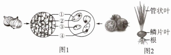 (4)洋葱的叶有管状和鳞片状两种形态(如图2),与鳞片叶相比,绿色的管状叶细胞中特有的结构是____。