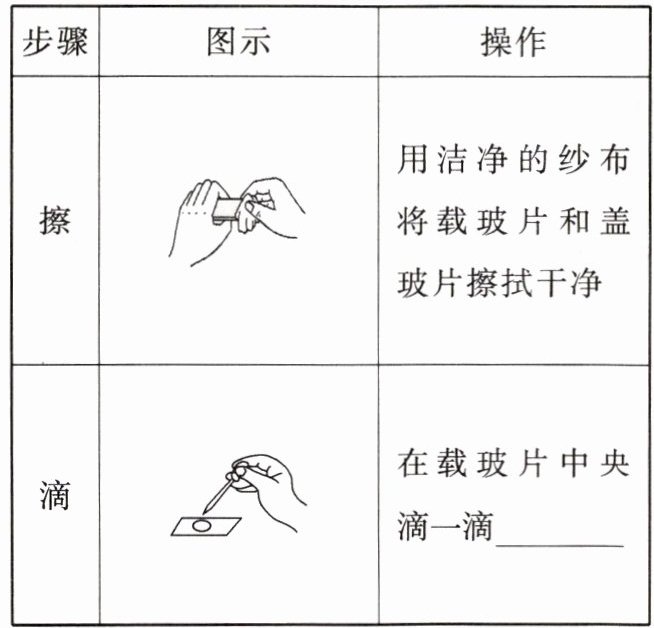 |滴||在载玻片中央滴一滴______|