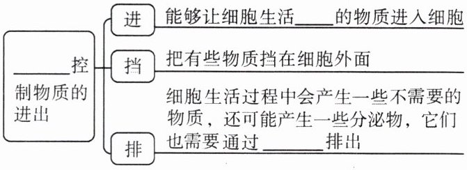 排:细胞生活过程中会产生一些不需要的物质,还可能产生一些分泌物,它们也需要通过(空白)排出