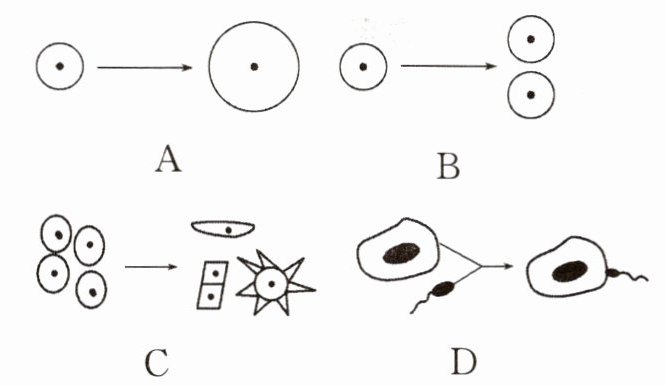 3. 下列所示的四幅图表示人体内四种生命活动过程,其中能表示细胞分裂的是( )