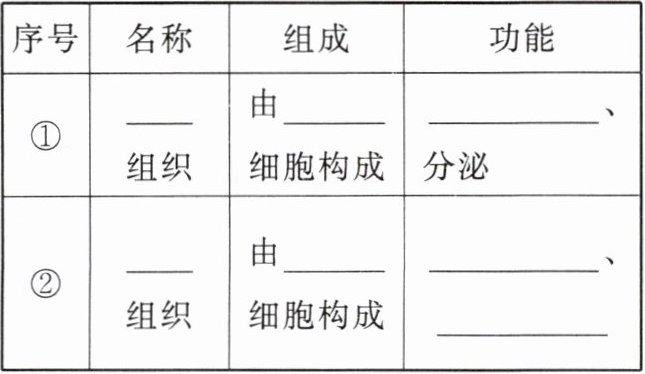 |④|____组织|种类很多|支持、连接、保护、营养等|
