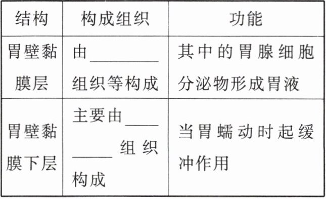 可见,胃由上皮组织、肌肉组织、结缔组织和____组织构成,具有储存和初步____食物的功能。