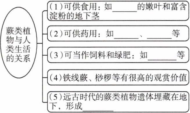 1. 常见蕨类植物:铁线蕨、鳞毛蕨、______、满江红、卷柏、贯众等。