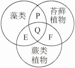 B 解析:藻类,无根、茎、叶的分化,E不能表示有茎、叶分化;藻类、苔藓植物和蕨类植物都不结种子,用孢子繁殖后代,故Q可表示用孢子繁殖;苔藓植物没有输导组织,蕨类植物有输导组织,因此F不可表示都有输导组织;藻类生活在水中,苔藓植物生活在潮湿的环境中。