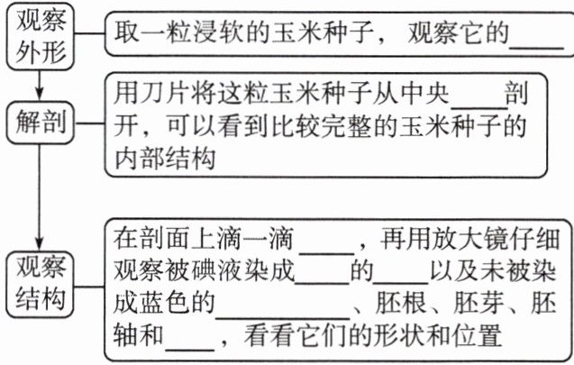 观察外形 → 取一粒浸软的玉米种子,观察它的____