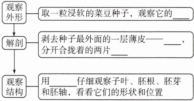 观察外形 → 取一粒浸软的菜豆种子,观察它的____
