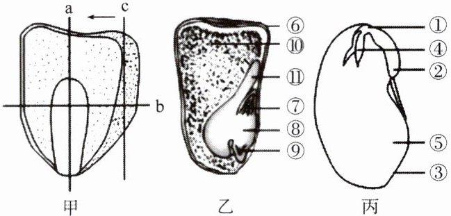 丙:菜豆种子结构图(①、④、②、⑤、③为标注部分)