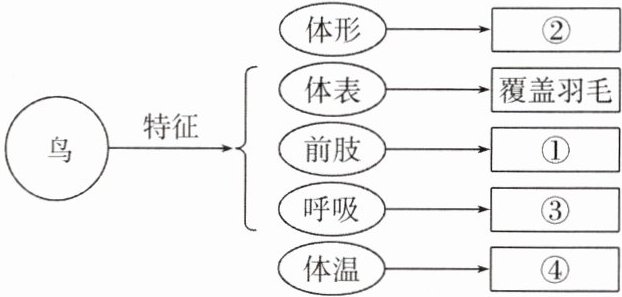 6. 某同学尝试填写鸟部分特征关系图(如图),其中填写错误的是 ( A )