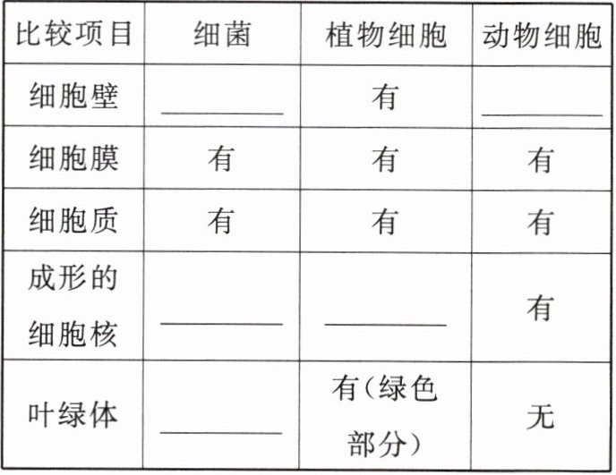 活动 2:归纳细菌和动植物细胞在结构上的异同点。