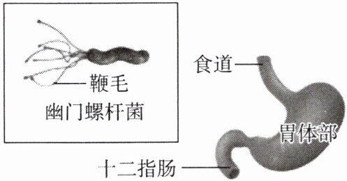 (1)如图所示,幽门螺杆菌进入胃后,可以依靠其____(填结构名称)在胃内自由运动。